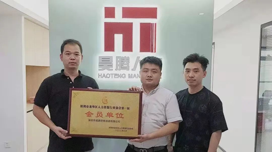 7月25日,深圳市龙华区人力资源行业协会在龙华人才园为深圳市昊腾劳务派遣有限公司举行了授牌仪式,协会秘书长欧江向昊腾劳务总经理马承祖、副总经理陶俊峰授予了协会会员单位牌匾。