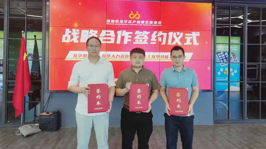 (深圳市龙华区人力资源行业协会宣传部:陈磊、欧江)2022年8月2日下午,龙华区产业园区促进会、龙华区人力资源行业协会、龙华区技能工艺人才协会在富士康智能制加速营合作基地举行了战略合作协议签约仪式,龙华区产业园区促进会会长邱伟标、龙华区人力资源行业协会秘书长欧江、龙华区技能工艺人才协会秘书长吴淏中出席了签约仪式。