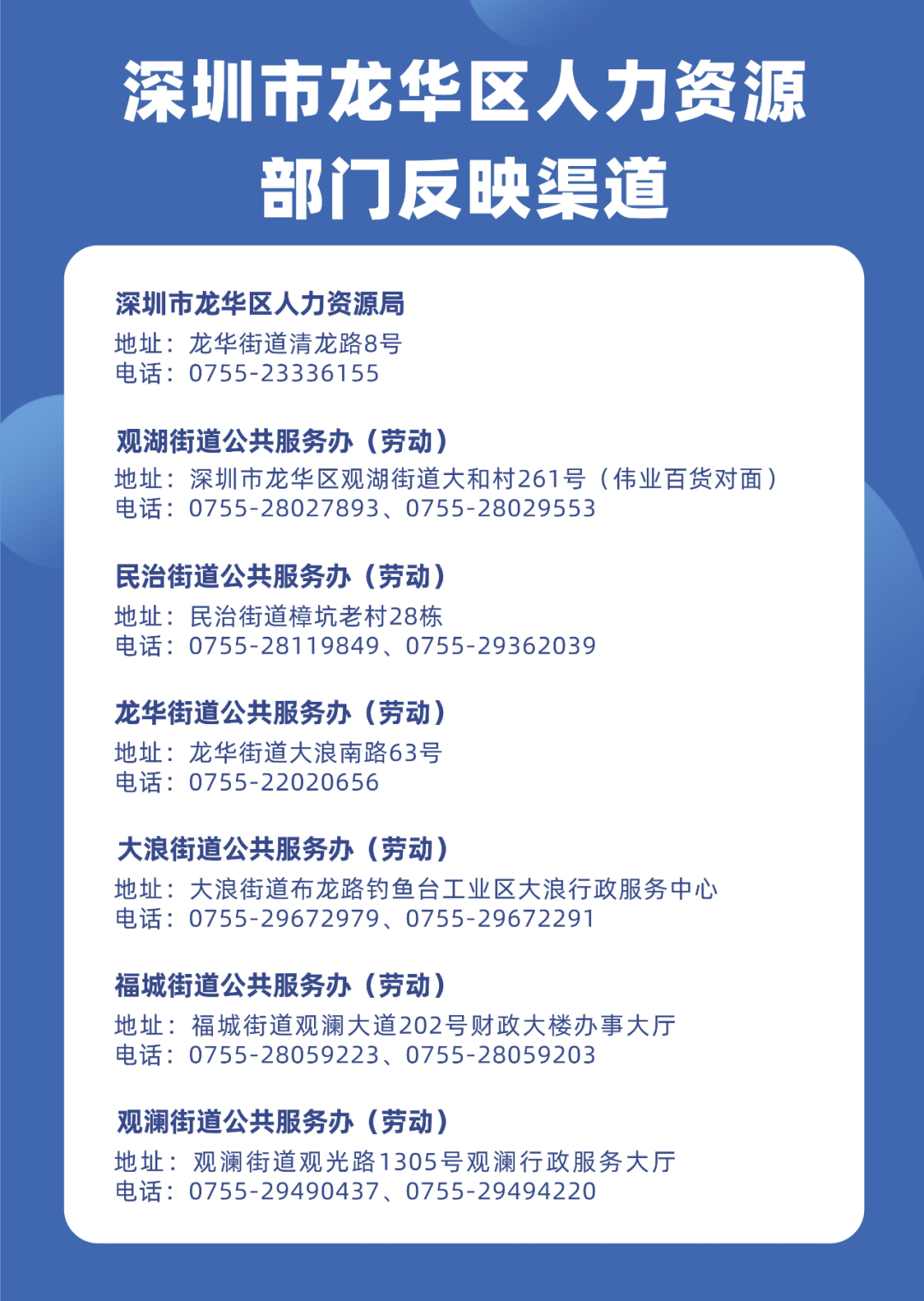 深圳市龙华区人力资源部门反映渠道