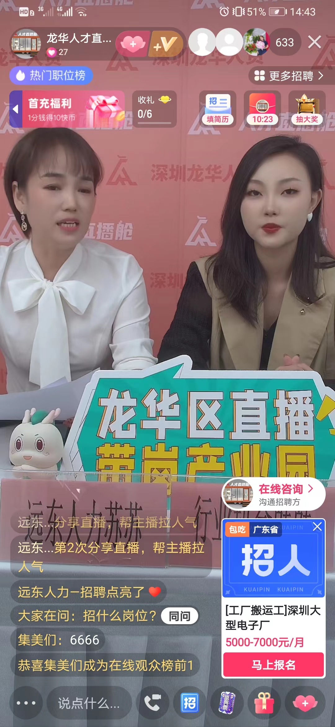 由深圳市远东人力资源有限公司开展的直播带岗圆满告一段落啦!感谢朋友们大力支持。