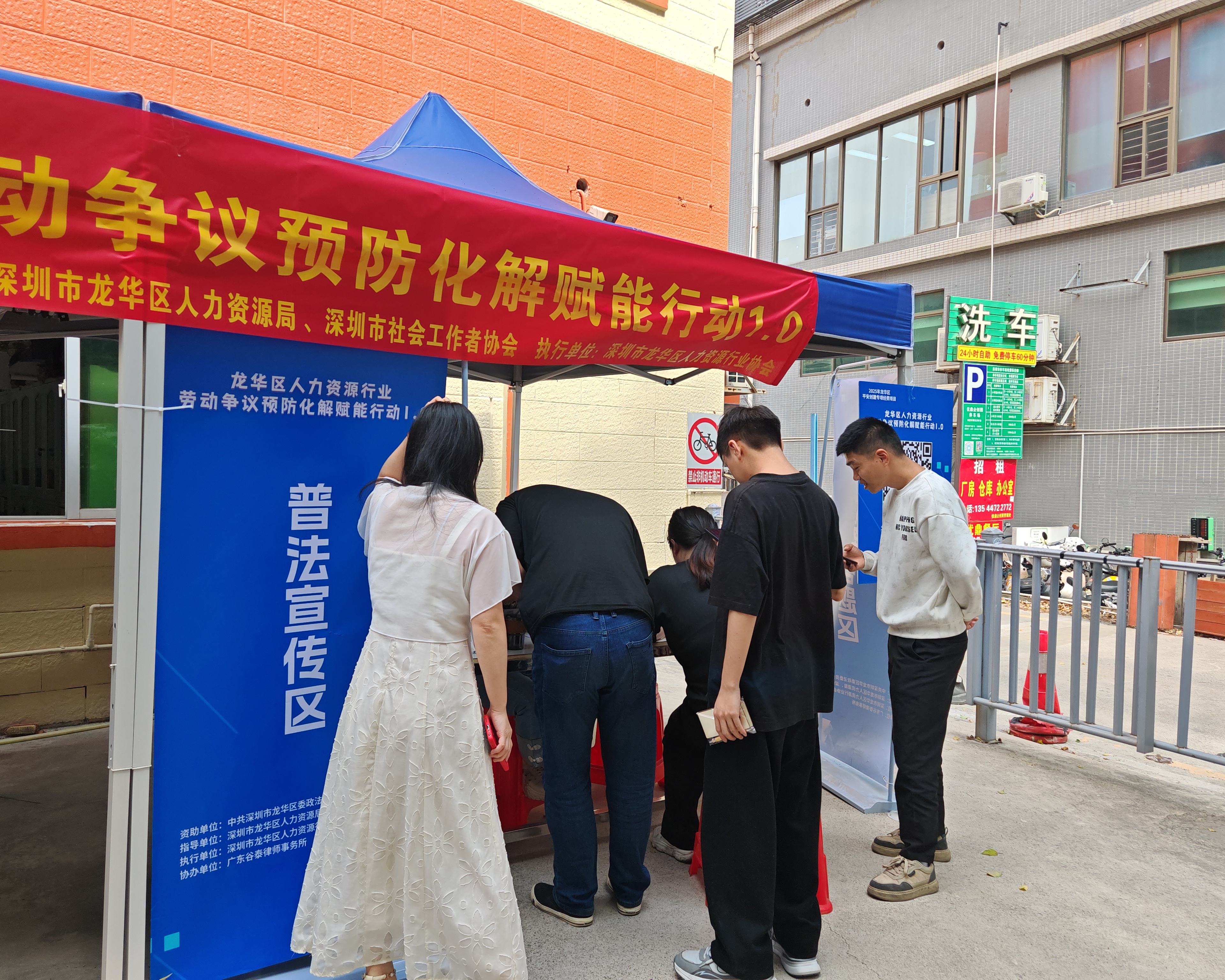 3月24日(星期二)上午,由龙华区委政法委资助、龙华区人力资源局指导,深圳市龙华区人力资源行业协会承办的“2025年龙华区平安创建专项经费项目--龙华区人力资源行业劳动争议预防化解赋能行动1.0‘线下普法宣传活动(第四场)’”,继续在龙华汽车站片区周边旁深圳市龙华区龙华街道优鼎企创园内(海浪人力劳动争议调解服务点)举办。活动现场开展了金牌调解员现场咨询接访、AI律师现场答疑、劳动争议调解知识线上有奖答题等活动,通过“寓教于乐”切实提升辖区广大劳动者、市民朋友的法律意识,引导大众形成“有问题、先调解”的良好理念。当天共有近百人次的劳动者、市民朋友先后入场参加,现场开展劳动争议咨询普法十余次、现场接访2宗、发放有奖答题奖品67份,获得了参与人员的一致好评,还得到了周边企业、机构的充分肯定,助力劳动争议纠纷源头化解。